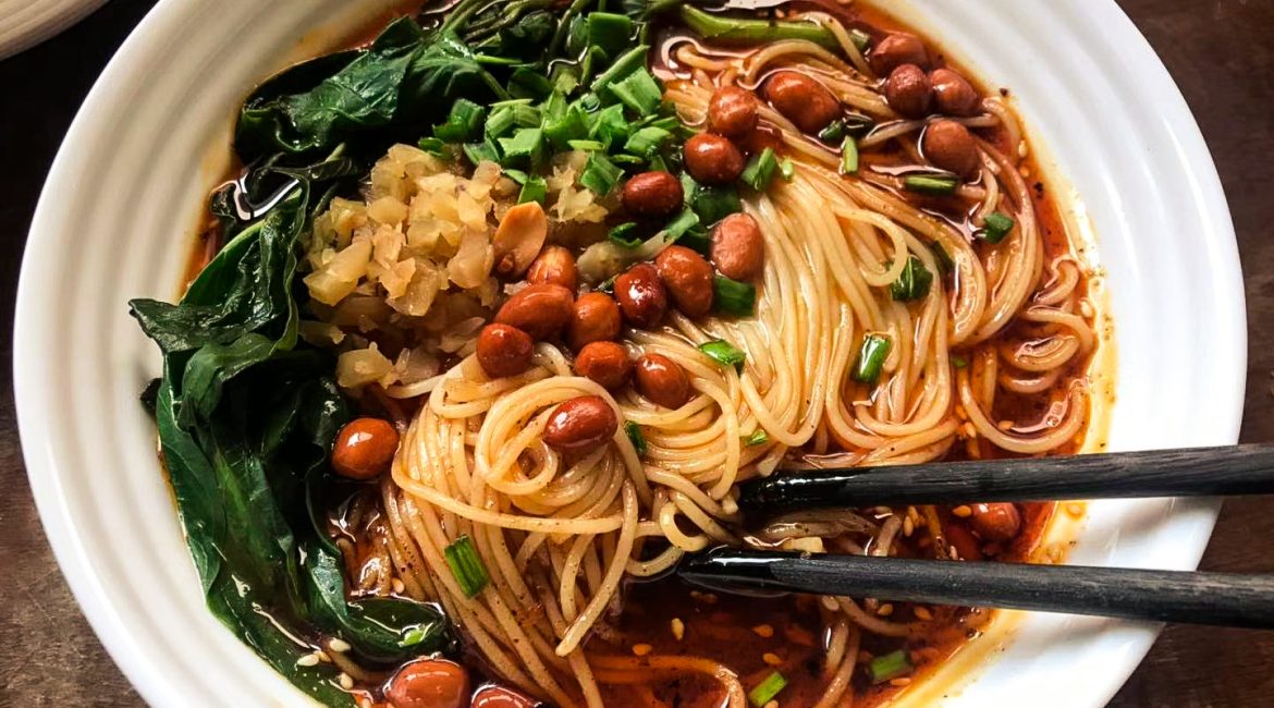 Mì Gánh (Dan Dan Mian): Sự kết hợp tinh tế của sốt thịt băm và hạt mè bùi béo.